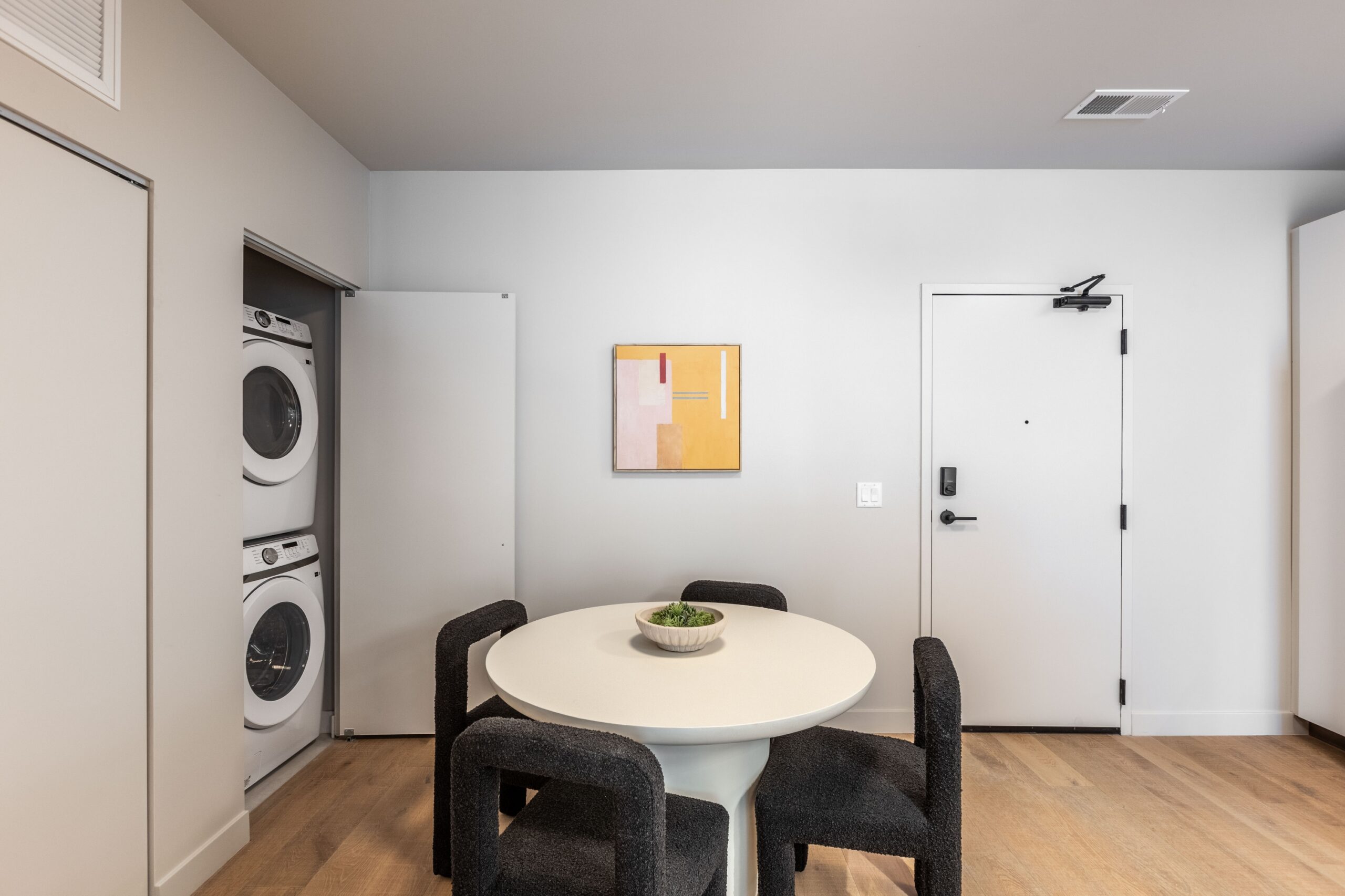 Comfort specs include in unit laundry, smart-system controlled central heat and A/C, and high end shades in each room. The building has keyless entry throughout including a state of the art exterior intercom system for the best kind of security!
