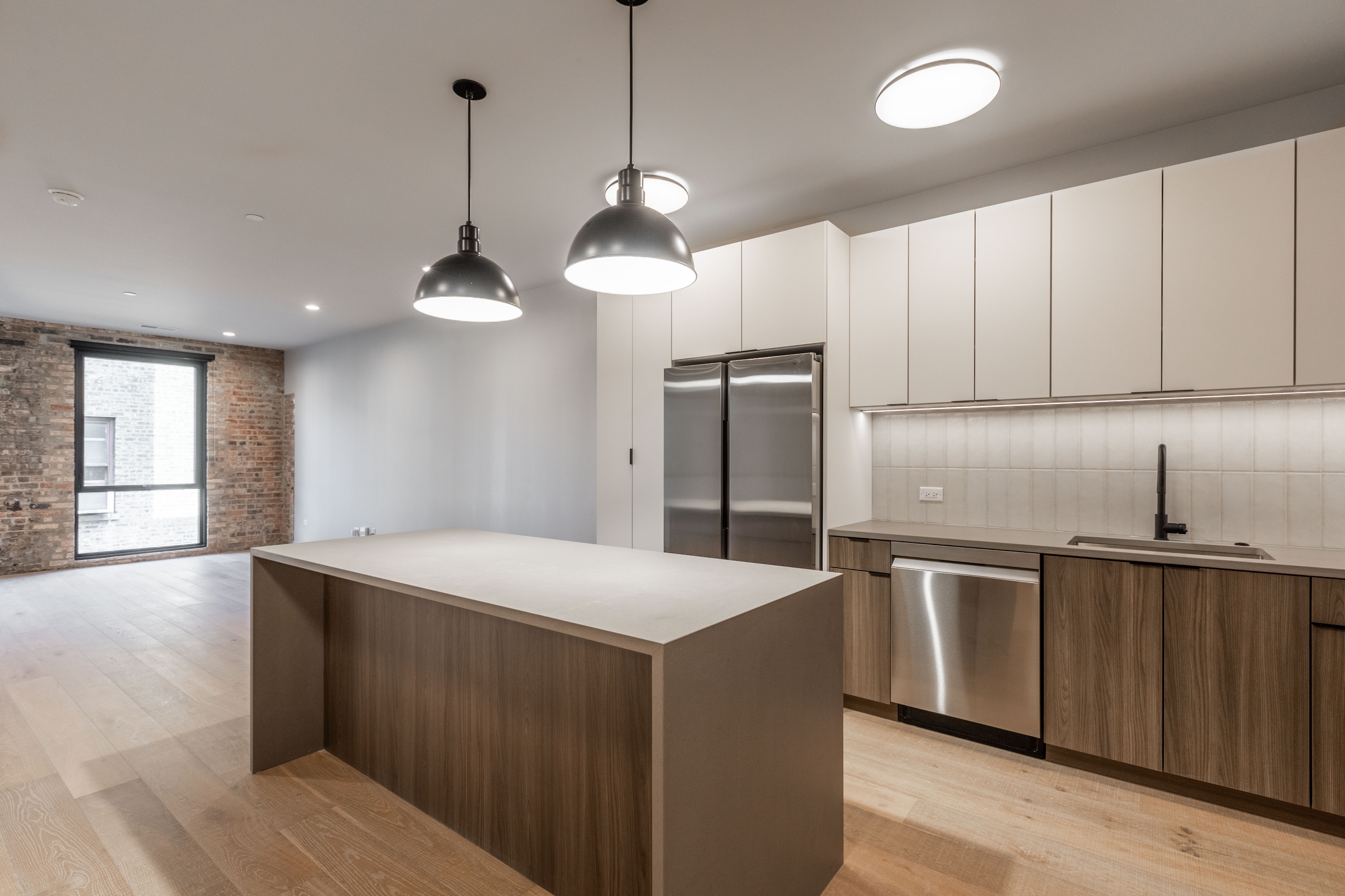 The Varsity is luxury living in the heart of downtown Evanston - Available June 16! This is a 3 bedroom, 2.5 bathroom duplex up unit; the expansive layout features brand new hardwood flooring, designer lighting, and unique architectural accents. The designer kitchen boasts quartz countertops and brand new appliances while the living room offers beautiful exposed brick and huge windows for all that natural light. The bedrooms have ample space for a queen sized bed and each has a custom organized closet. The bathrooms have spa-inspired floor to ceiling tiling for a sharp look and easy cleaning. Comfort specs include in unit laundry, smart-system controlled central heat and A/C, and high end shades in each room. The building has keyless entry throughout including a state of the art exterior intercom system for the best kind of security! Residents benefit from a comprehensive utility service package covering water, sewer, trash, recycling, and lightning-fast 1000 Mbps internet. The Varsity is a pet-friendly community. Ask about our off-site parking option located just own the street!